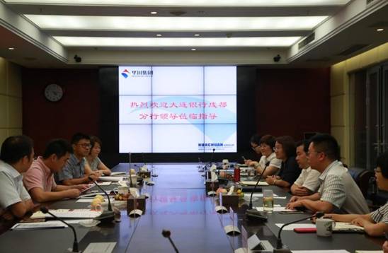 7月25日,大连银行股份有限公司成都分行新任副行长卢景煜带领授信审批部总经理王东、公司银行部副经理李智奇、大连银行股份有限公司九眼桥支行行长宋涛一行4人莅临华川集团。本次访问是大连银行成都分行高层换届后首次到访集团。