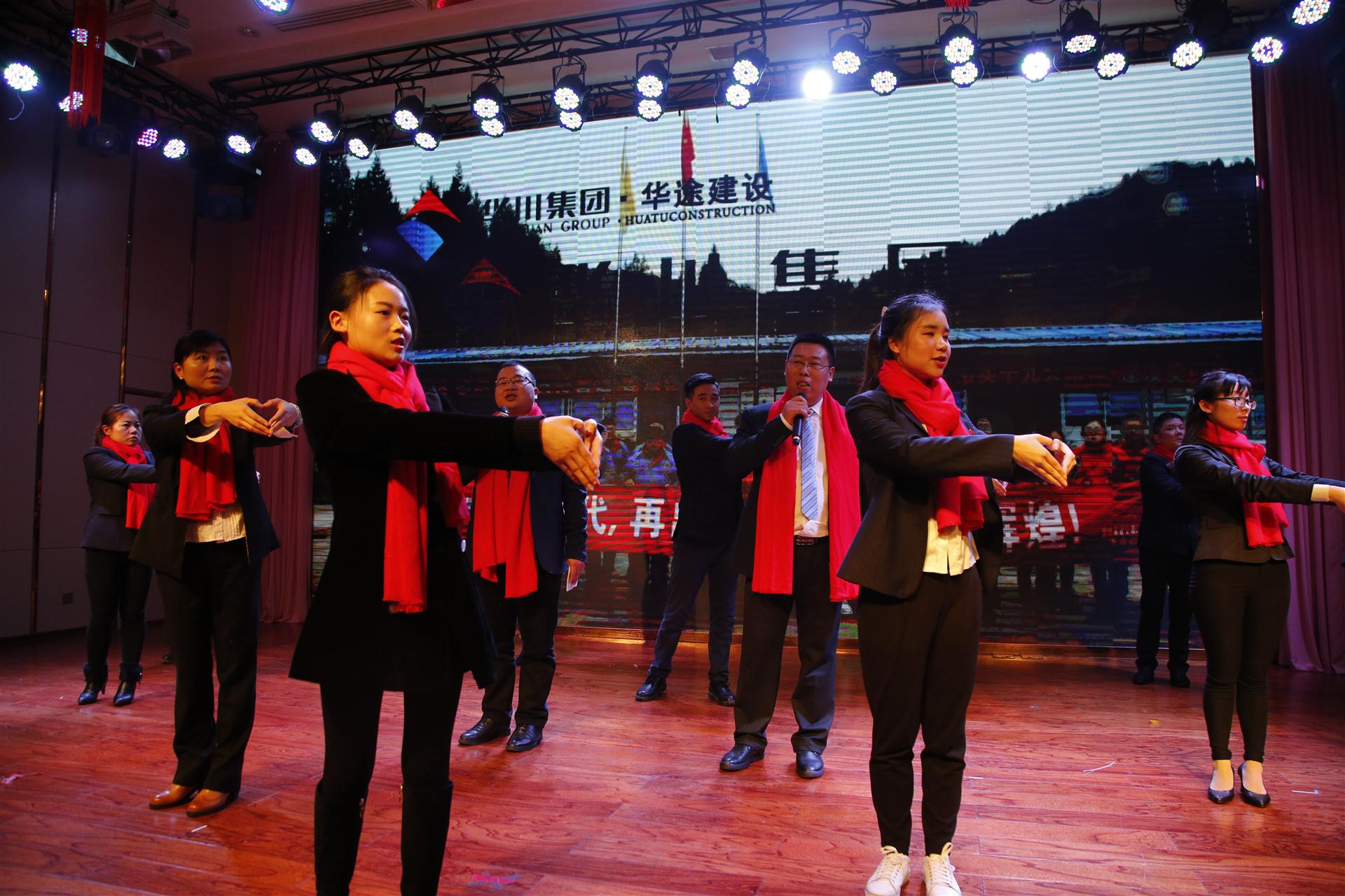 下午一时许,集团举行了2018年新春团拜会。与会人员欢聚一堂,喜迎新春,共谋未来。团拜会在歌舞《好运来》中热闹开场。随后舞蹈、合唱、歌伴舞悉数登场,节目新颖、编排创新,华北片区带来的改编自《成都》的《工地》和改编版《为了谁》,唱出了华北片区修路铺桥的艰辛,一句句歌词展现着一幅幅画面,一幅幅画面都是华川儿女辛勤耕耘的成绩。华途公司带来的手语舞《相亲相爱的一家人》、衡信公司带来的歌伴舞《感恩的心》表达了华川儿女一家人,齐心上下共迎美好未来的憧憬。整场团拜会欢乐热闹,洋溢着喜庆欢快的节日氛围。大家笑语不断,不时举杯共庆,共叙家人情谊、共话未来发展。