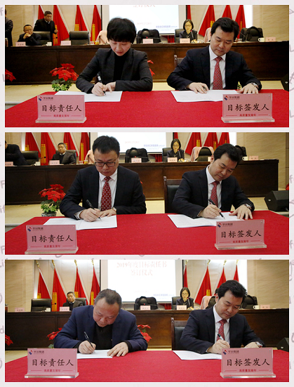 会议宣读了《关于2019年集团高层领导分工的通知》、《关于2019年度人才队伍建设工作安排的通知》、《关于优化2019年集团管控模式和组织架构的通知》以及2019年行政及党支部人事任免系列文件,分别在工作会及党建工作会上签订了年度目标责任书。党委副书记施继梅作2019年党建工作报告、集团副总裁杨开荣作2019年度集团安全生产工作要点报告,对相关工作作了进一步部署安排。