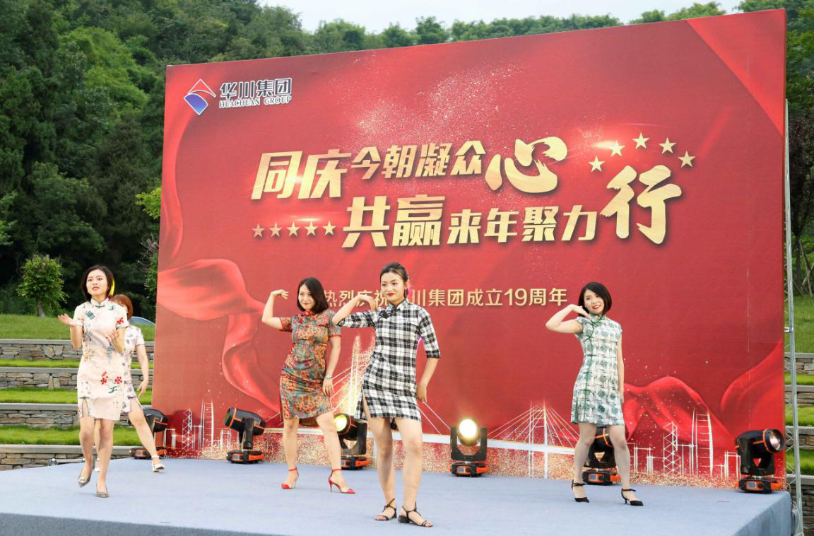 晚上,农业总部基地灯火熠熠,集团19周年庆典晚会在这里举行。作为十九周年与二十周年的连接节点,今晚过后将迎来集团成立二十周年华诞,党委副书记发布《关于庆祝集团成立二十周年氛围营造工作的通知》,副总裁熊文发布《休养度假专项福利方案》。发布会后,一曲《盛世华诞》鼓舞划破夜空,激烈昂扬鼓声将拉开了庆典的序幕。《今天是你的生日》,通过词语改编,为集团送上了美好的生日祝福;群舞《别样风华》,通过集团女干部与文工团温婉柔美,犹如一幅曼妙的画卷;朗诵加合唱的节目《华川力量》,字字铿锵,展示出华川人血脉里流淌的豪迈情怀和磅礴的力量。伴随着晚风习习,周年庆典进入尾声,在《华川之歌》的歌声中,大家自发走上舞台,齐声合唱,伴随着熟悉的曲调,大家连连欢呼,为本次庆典划上了圆满的句号。