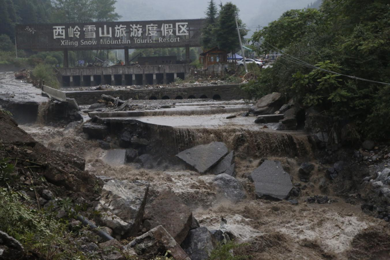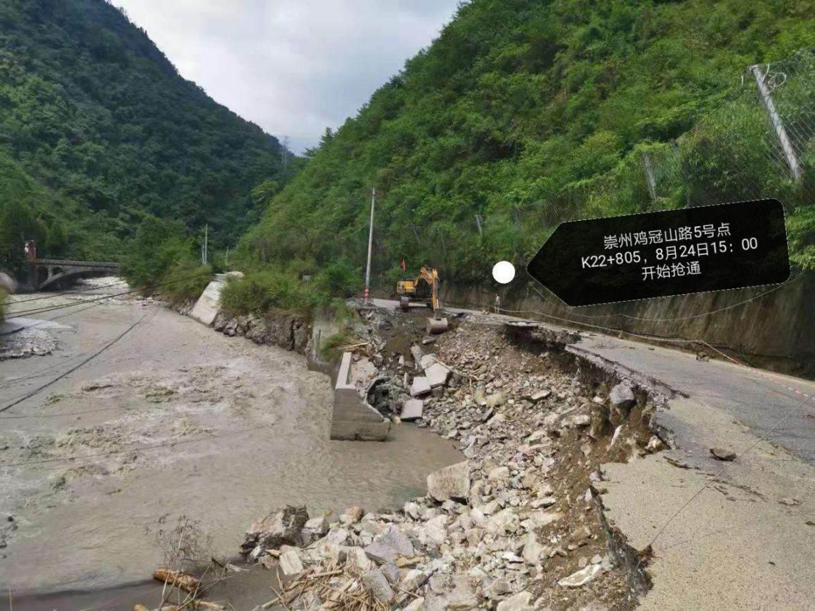 崇州市鸡冠山路全长近42公里,受此次强降雨影响,已探明其中31公里路段有24处断点,其中5处路基冲毁严重,有的路段半幅路基路面被山洪冲垮,有的路段路面悬空,有的路段全部被洪水冲毁。