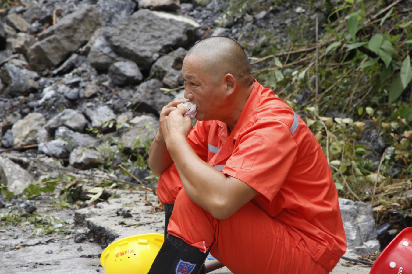 抢险任务紧张,抢险队员无暇吃上一口饱饭