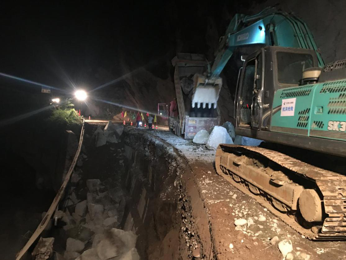 22日,集团抢险队伍对5号山体滑坡路段进行疏通,由于后方路段损毁严重,重型机械无法抵达,抢险队员们冒着不断滚落的滑坡碎石,采用人工清理的方式,用双手与一块块巨大的滑坡石体相抗,最终及时疏通出一条可供人员通行的生命通道,滞留游客和群众于22日下午开始陆续撤离。