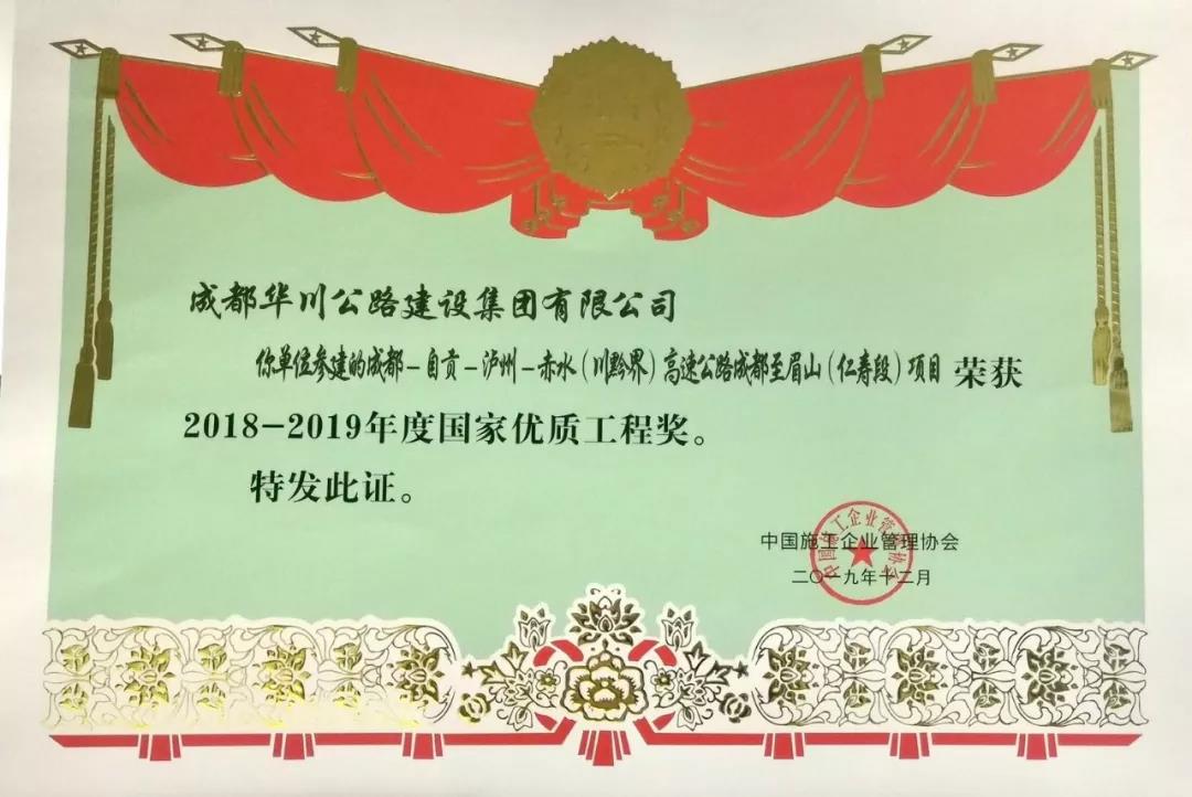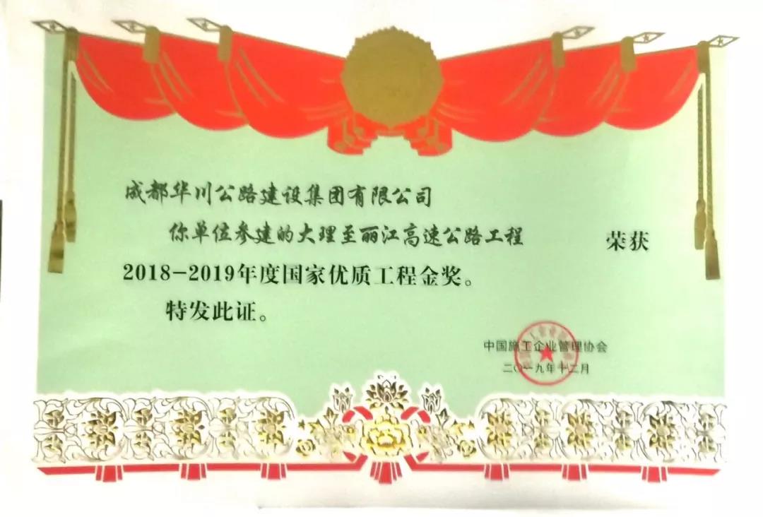 集团在2018年组织申报的“大理-丽江集团概况”、“成都-自贡-泸州-赤水高速成仁段”项目于今年12月分别荣获“国家优质工程金奖”、“国家优质工程奖”两项殊荣,实现了集团参建工程在国家优质工程(金)奖上的突破。