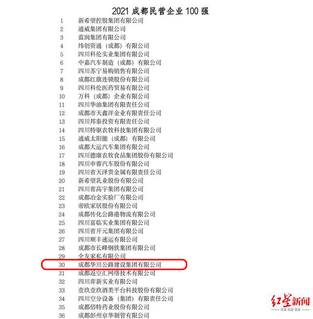 华川集团蝉联“成都企业双百强”榜单