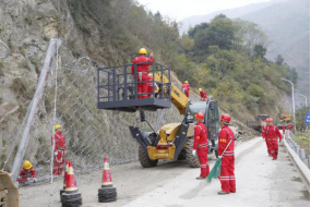 集团参演科目为S105线南坝路段受到地震引发的次生灾害影响,导致山体滑坡、塌方,需要紧急抢通。演练中,根据指挥部命令,集团迅速组织应急救援队伍到达受灾路段,快速清理塌方、落石,并与武警救援力量密切合作,共同完成了靠山体一侧的高空作业,成功搭建起20米长的防护网,在最短时间内打通了青川至平武方向生命通道,为后续灾区救援争取了宝贵时间,圆满完成了演练任务。