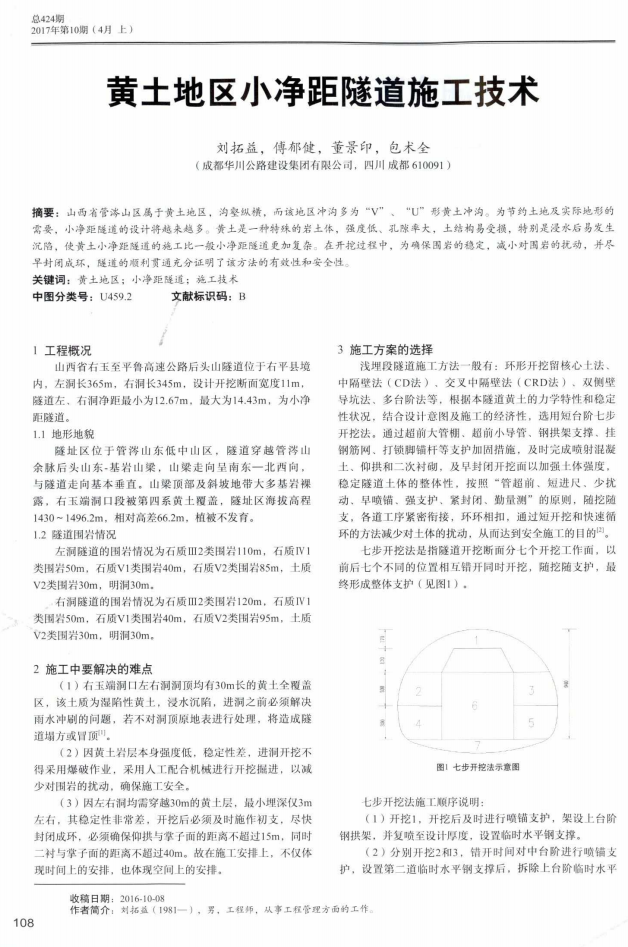 5月12日下午,山西右平项目部收到来自中央级期刊《交通世界》(旬刊)编辑部寄来的学术论文刊登贺信,祝贺由成都华川公路建设集团有限公司山西项目部项目总工程师刘拓益,项目副经理董景印、包术全,项目副总工傅郁建合作的学术论文《黄土地区小净距隧道施工技术》被采用发表,该项学术论文的发表为集团公司在科技成果方面再次添砖加瓦,同时表明了山西项目在科技成果的创新工作上再上了一个新的台阶。