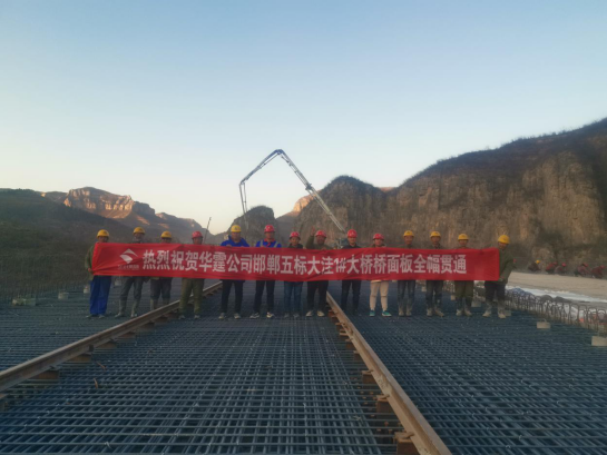 随着年度通车目标的日益临近,华霆公司邯郸五标的生产进度也快马加鞭地有序推进。12月4日,华霆公司邯郸五标又一次迎来了关键性工程节点,大洼1#大桥桥面板顺利实现全幅贯通。