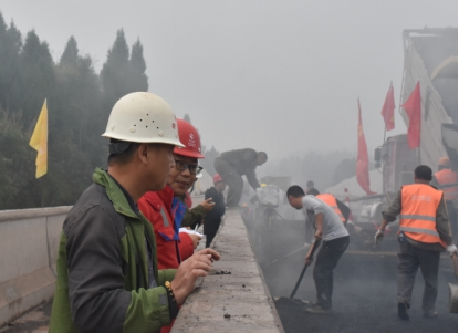 铺筑过程中,营山代表处、2驻地办领导到现场指导工作,详细查看各项施工工序,现场文明施工情况,是否在保质量、保安全情况下进行。肯定了项目部对本次试验段铺筑的准备工作,并对现场摊铺、碾压等质量控制、安全文明施工等方面提出宝贵行意见,得以试验段更加完美铺筑完成。