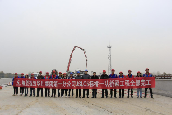 淀南新堤大桥桥面铺装竣工现场,总经理罗剑虹向在津石项目上做出优异成绩的桥梁一队及付出辛勤劳动一工区全体将士表示热烈的祝贺。他指出,此次桥一队桥梁工程的圆满完成,不仅是“决战60天”期间取得的重大胜利,也是冲刺年度目标进程上的重要里程碑,为后续施工开展奠定了坚实的基础。在往后的施工中,全体将士要更高效、更安全、更全面地施工,为华川集团在全线赢得良好的声誉。